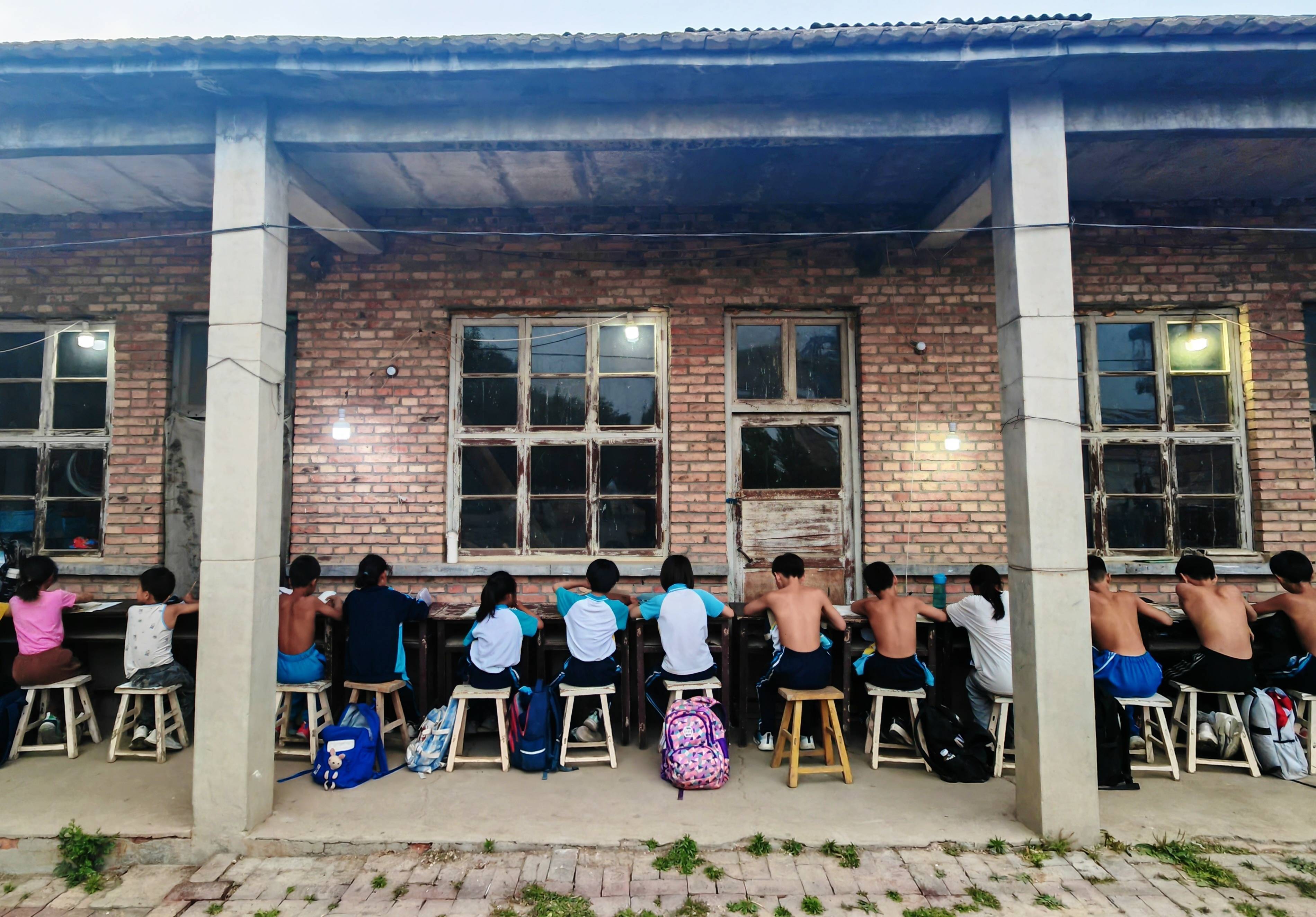 5月7日,摔跤训练前孩子们在写作业。新华社记者 杨帆 摄这座院落里有一片6亩的土操场,一个300多平方米的铁皮房,都是村民白鹤江由一个旧工厂改造而来的。操场上摆满了旧轮胎、大石锁,各种由传统农具改造而来的训练器械,铁皮房的角落里堆满了跤衣。